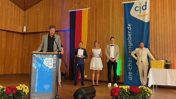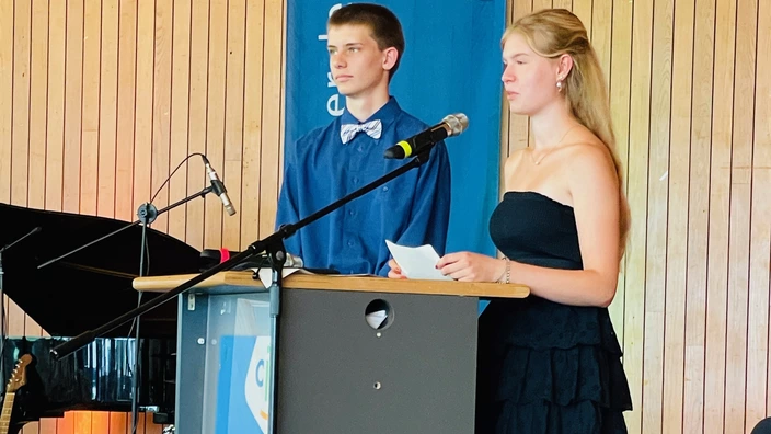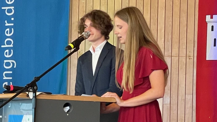 Nach der Feier kamen die Zehntklässler, ihre Eltern und Verwandten und das Kollegium in der Aula zusammen, um diejenigen zu ehren, die sich durch besondere Leistungen hervorgetan oder sich in der Schulzeit engagiert haben, um als Klassenlehrer*in auf eine gemeinsame Zeit zurückzublicken und um das Zeugnis in Empfang zu nehmen.