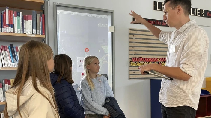 Die Eltern konnten sich unterdessen über das vielfältige Angebot der beiden Schulen „unter einem Dach“ informieren. Dabei war ein Thema unter vielen die Etablierung einer „neuen Lernkultur“ am Gymnasium und an der Realschule, bei der die Schülerinnen und Schüler ab Klasse 5, betreut von Lernbegleiter:innen und Fachlehrer:innen zunehmend selbstorganisiert arbeiten und lernen. „Wir haben unsre neuen Lernformate im letzten Jahr schon eingeführt und damit sehr gute Erfahrungen gemacht!“, sagt Bernd Ulrich Schaefer, stellvertretender Schulleiter des Gymnasiums. Martin Krude, Schulleiter der Realschule, freut sich, dass nach einer intensiven Planungsphase auch die diesjährigen 5er der Realschule mit dem Lernatelier und der Lernwerkstatt begonnen haben.
