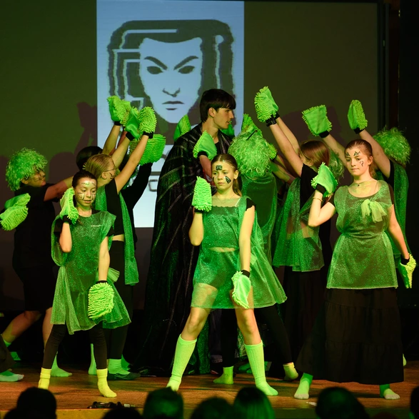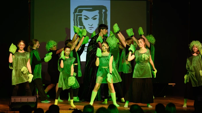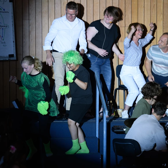 Wie üblich bei unseren Musicals waren viele unterschiedliche Akteure und Gruppen auf der Bühne. Tanz, Gesang Schauspiel ergänzen sich. Schüler:innen und Lehrer:innen stehen gemeinsam auf der Bühne. Oberstufe und Unterstufe. Und am Schluss siegt das Gute - wie sollte es anders sein.