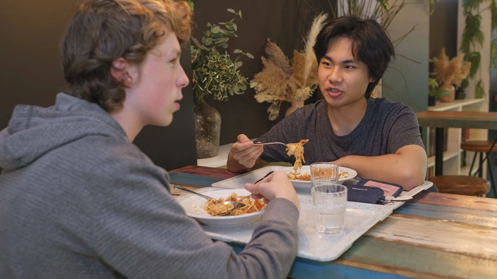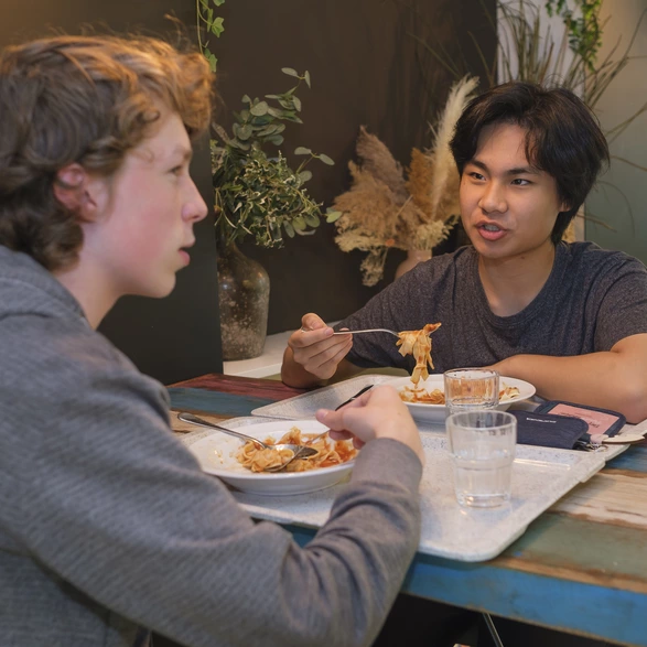 Unsere Mensa öffnet die Pforten unmittelbar nach der vierten Unterrichtsstunde bis um ca. 14.30 Uhr. Das Mensaessen kann online über unser Bestellportal MensaMax ausgewählt und vorbestellt werden. Der Essensbeitrag wird dann nachträglich durch die Schule eingezogen. Aber auch spontanes Essen ohne Vorbestellung ist möglich - unsere Nudelbar ist immer geöffnet.