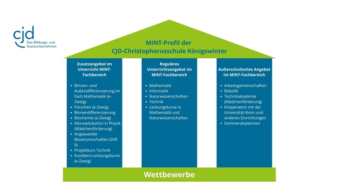 Seit dem Jahr 2009 bemüht sich die CJD-Christophorusschule Königswinter um eine verstärkte Herausarbeitung und Etablierung ihres MINT-Profils. Dieses Profil basiert auf den drei Säulen regulärer Unterricht, unterrichtliches Zusatzangebot und außerunterrichtliches Angebot im MINT-Fachbereich. Dieses Angebot wird durch eine Vielzahl obligatorischer und fakultativer Wettbewerbe im MINT-Bereich untermauert.